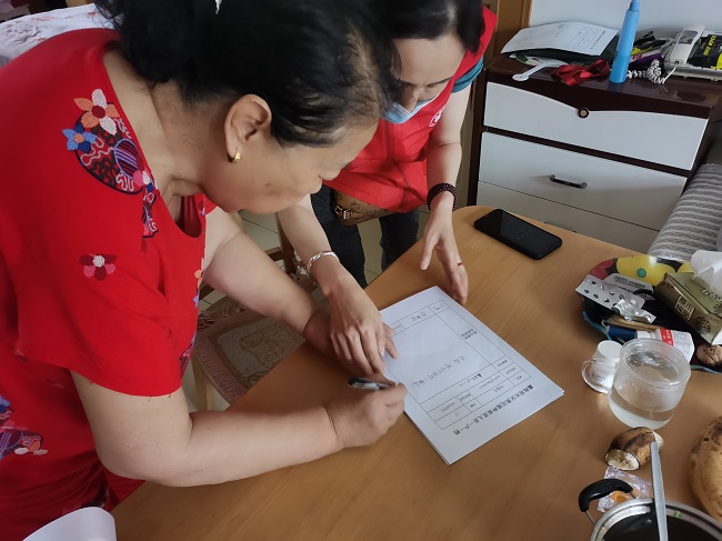 6月26日,組織黨員志愿者到鑫海苑社區(qū)開展入戶宣傳接打疫苗活動。